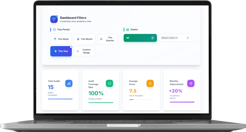 Enterprise dashboards provide real-time visibility into store-level performance, regional trends, compliance scores, and benchmarking across outlets.